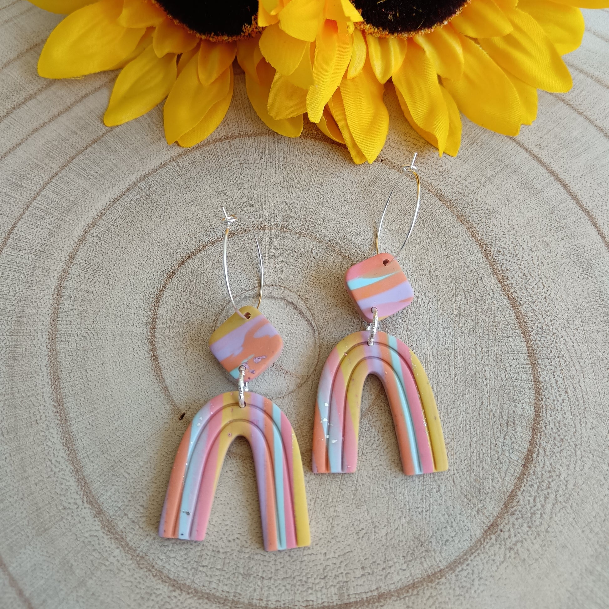 Arch Colorful Stripy Pastel Dangle Hoop Earrings