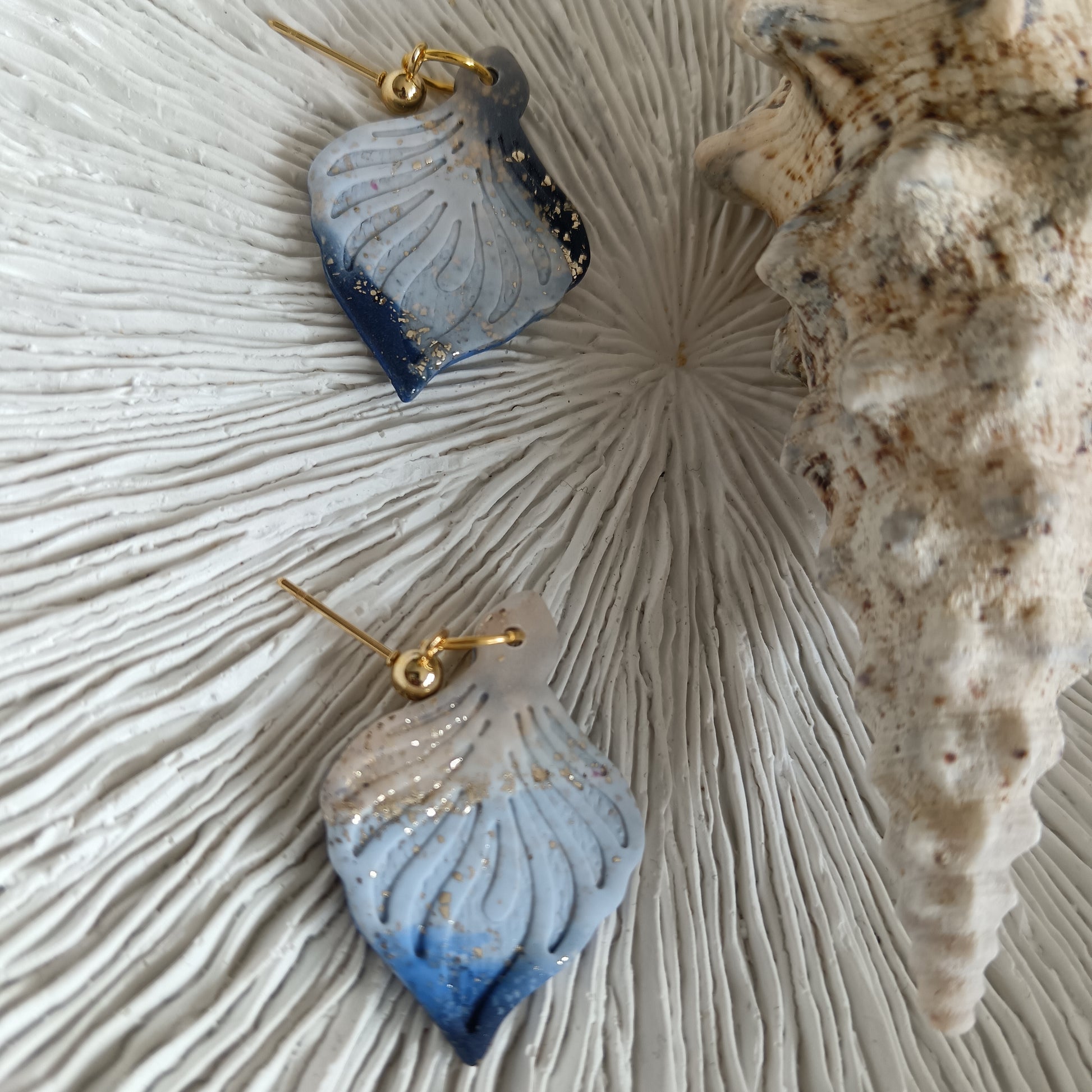 Handcrafted from polymer clay in a refined Art Deco silhouette and coloured in a soft coastal palette β think seafoam, misty blue, sandy beige, and driftwood grey.