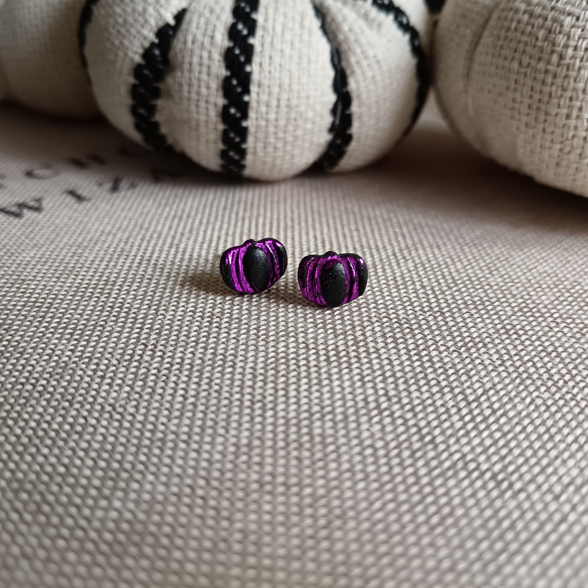 🖤💜 “Witching Hour” – Black Pumpkin Stud Earrings with Purple Leaf Detailing