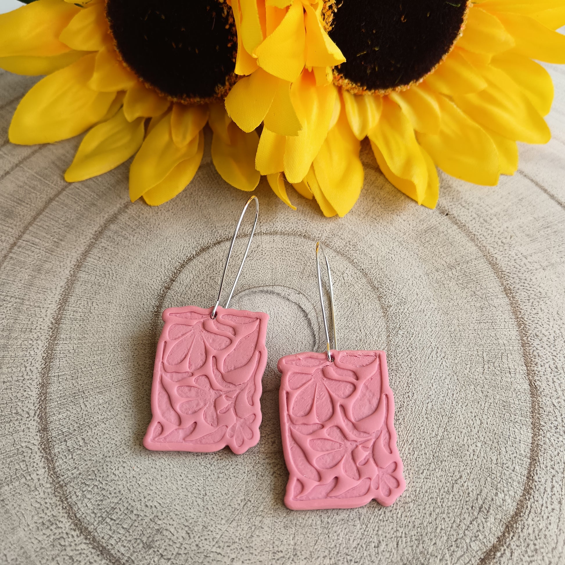 Boho Flower Rose Pink Kidney Wire Hoop Earrings