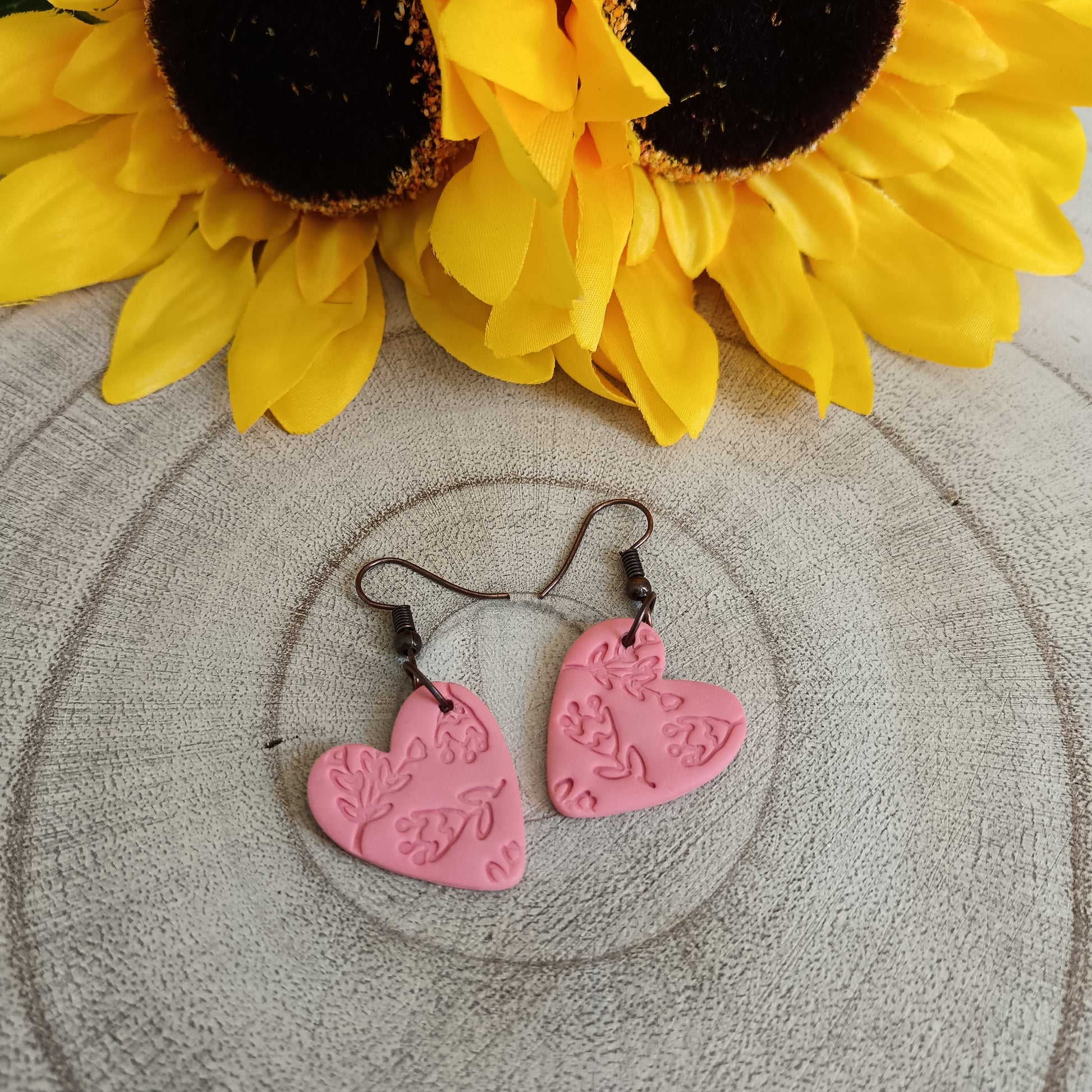 Handcrafted from polymer clay, each heart is delicately embossed with floral details, giving them a soft, textured finish full of charm and whimsy.
