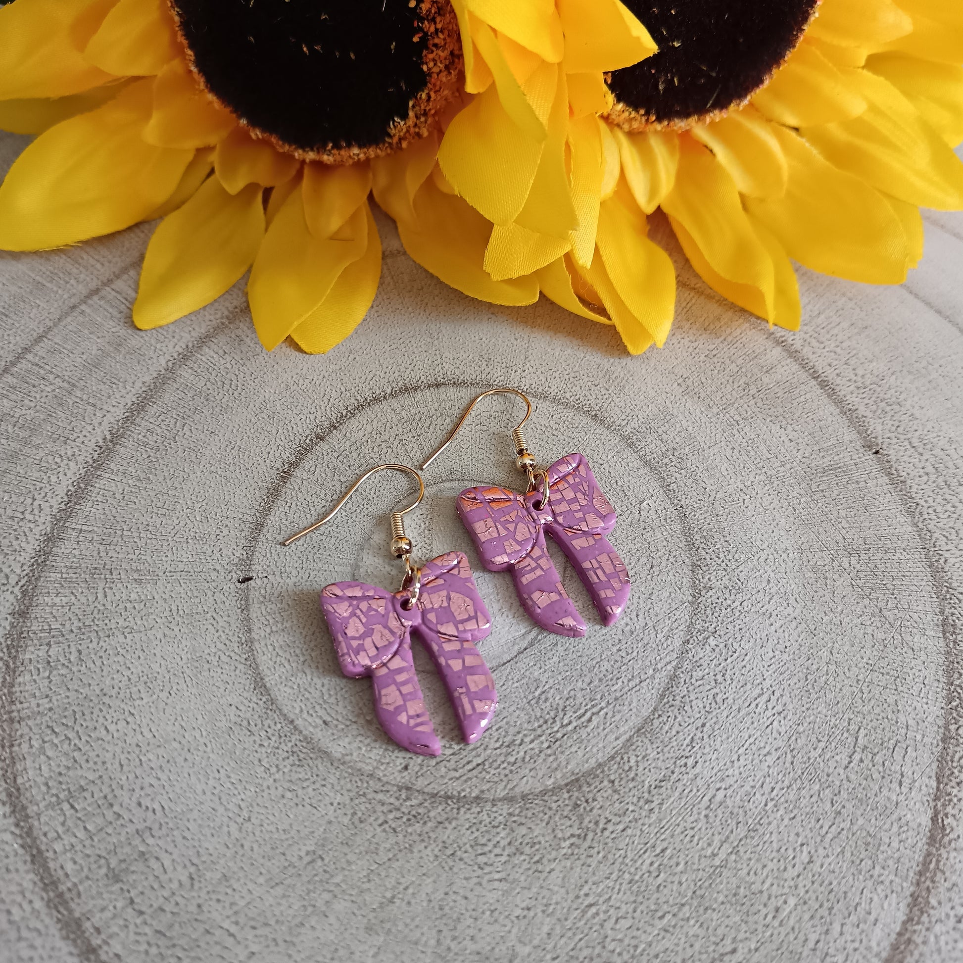 Bow Pink & Rose Gold Patterned Hook Earrings