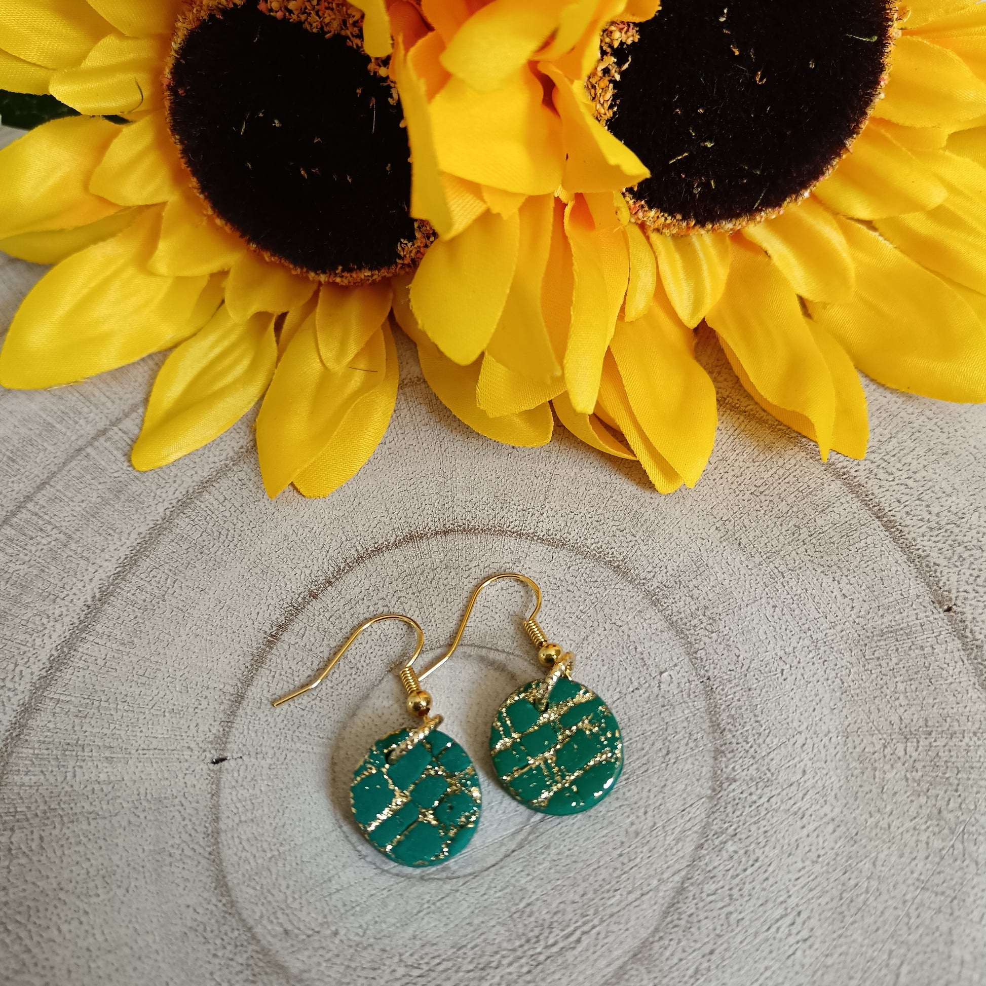 Channel your inner urban explorer with these green and gold brick wall textured earrings.
