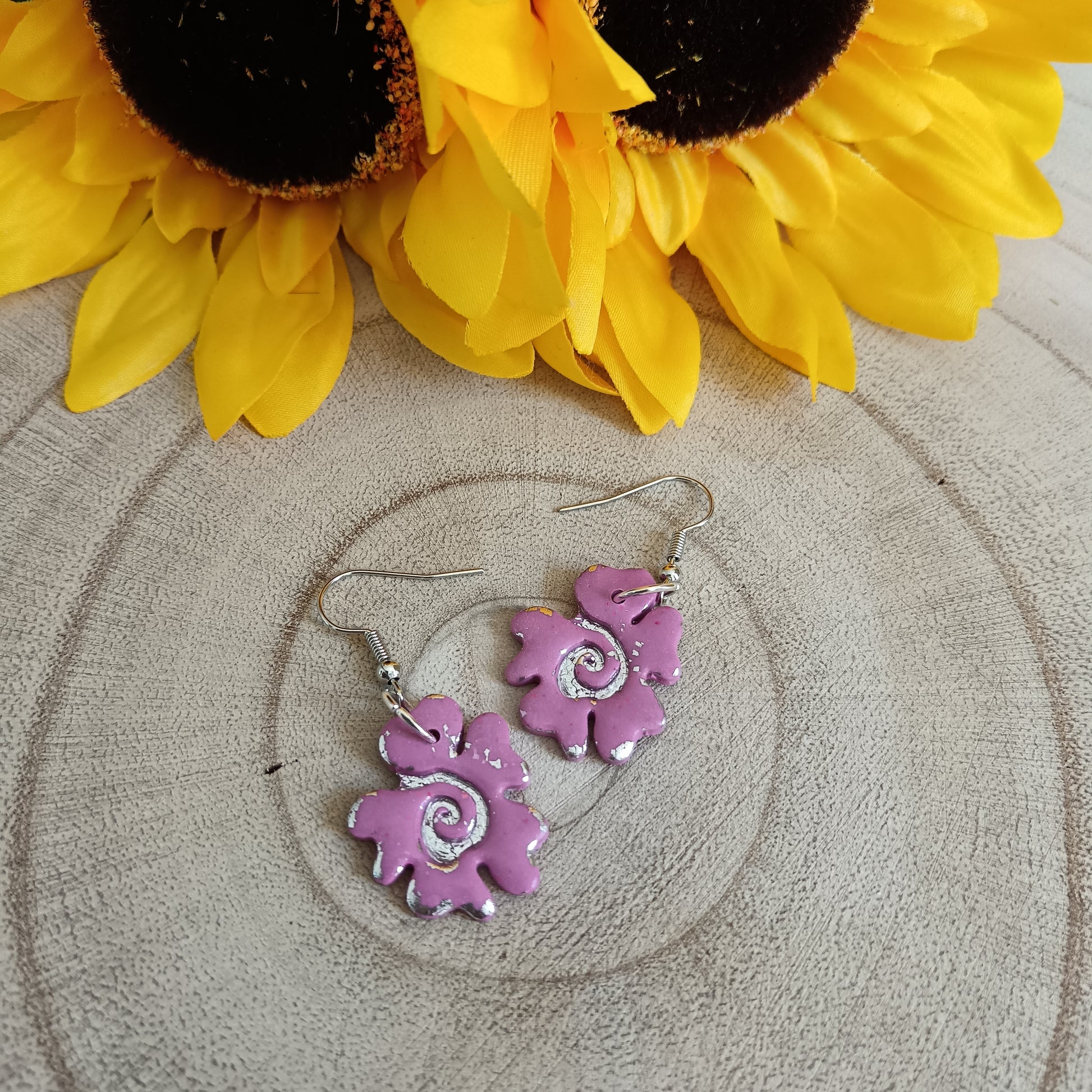 πΈ Pink & Silver Cherry Blossom-Shaped Polymer Clay Earrings