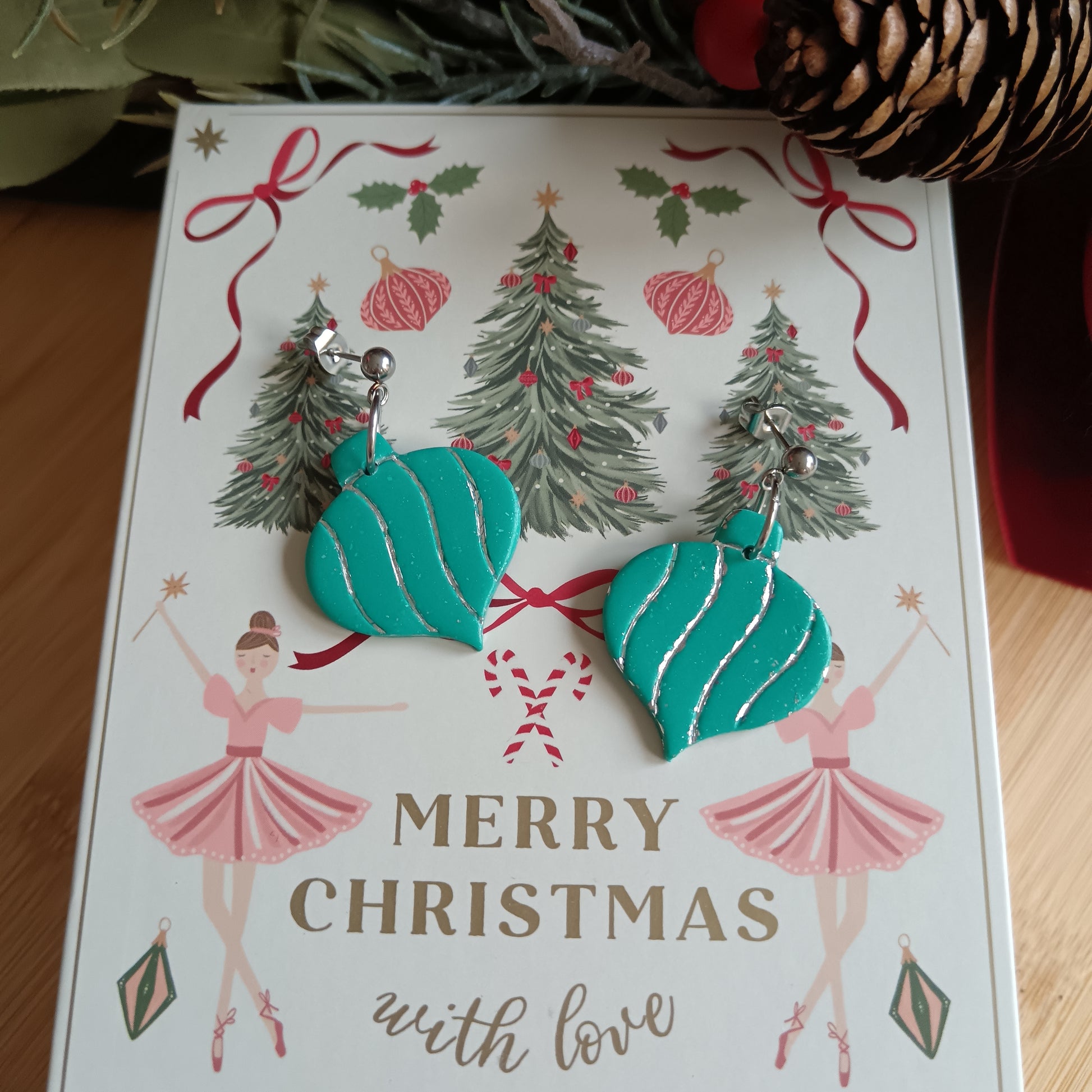 These turquoise and silver pointy baubles are handcrafted from polymer clay, combining cool turquoise tones with shimmering silver accents.
