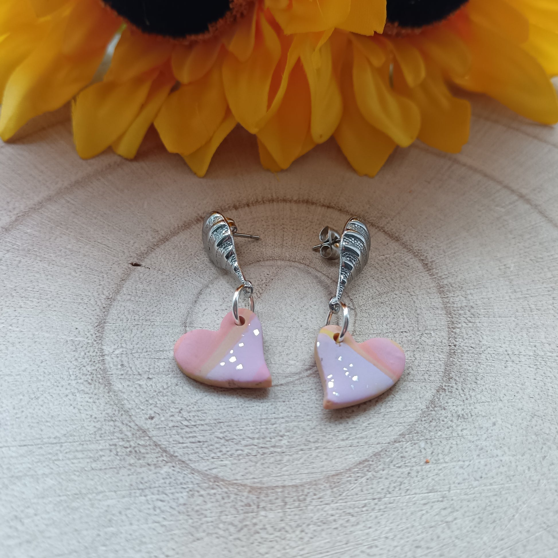 Colourful Stripy Pastel Heart Stud Dangle Earrings