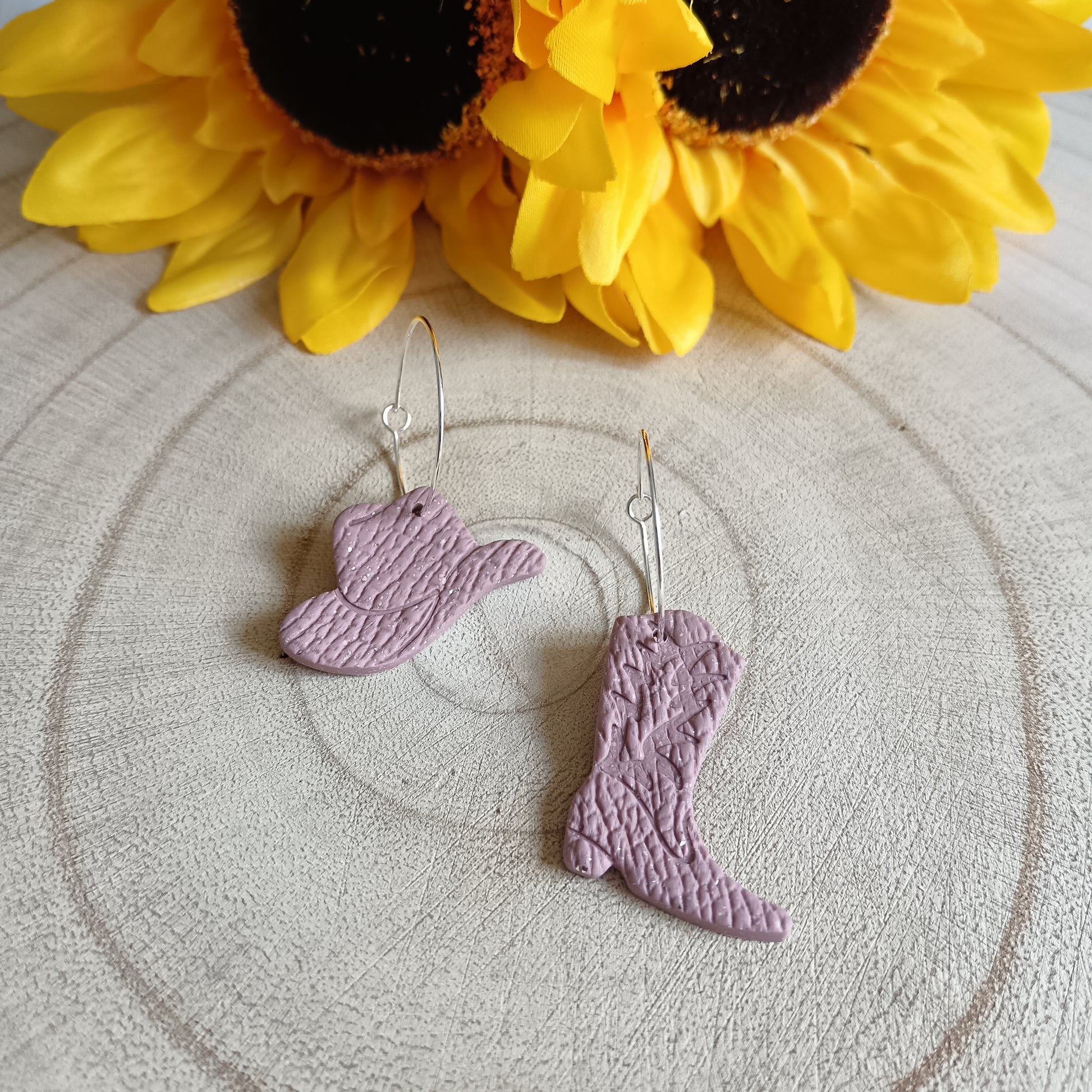 On 25mm Silver Stainless Steel Hoops and handcrafted from polymer clay, these earrings capture the essence of wild, free, and fierce — with just a hint of soft, leather pink. 💖👢