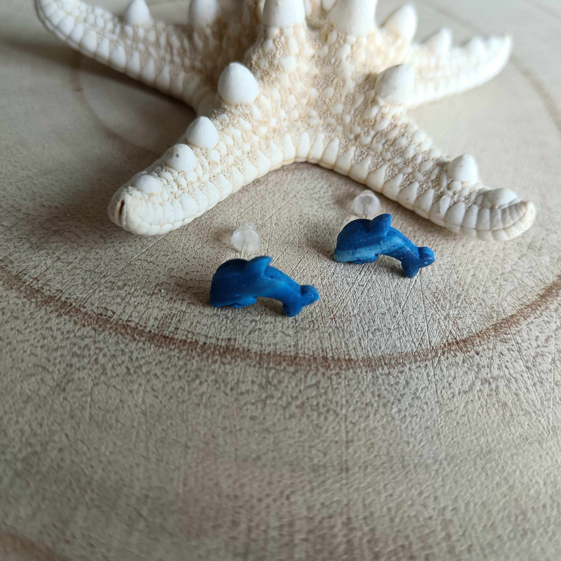 Handcrafted from polymer clay, each dolphin is shaped in a clean, minimalist silhouette and blended in a dreamy ombre gradient β shifting from soft sky blue to deep ocean navy.