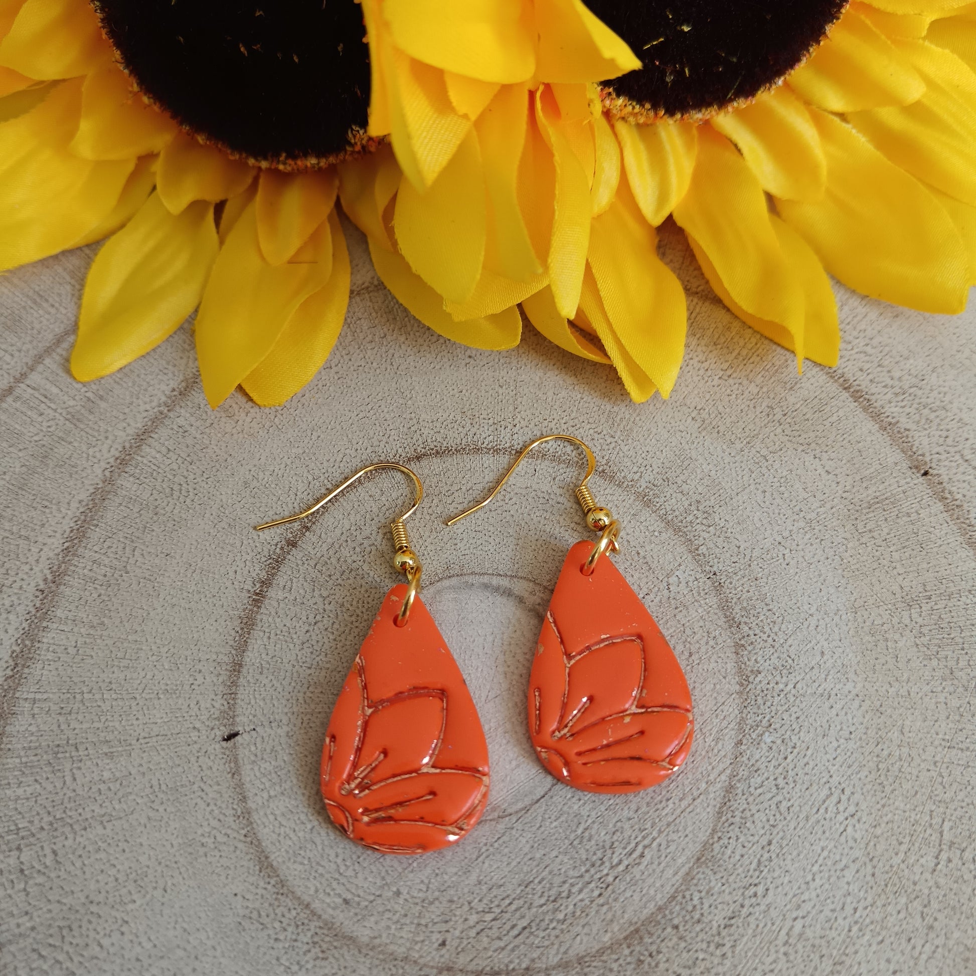 Let a little sunshine follow you everywhere ☀️ with these handcrafted drop-shaped polymer clay earrings, each beautifully embossed with a radiant sunflower design.