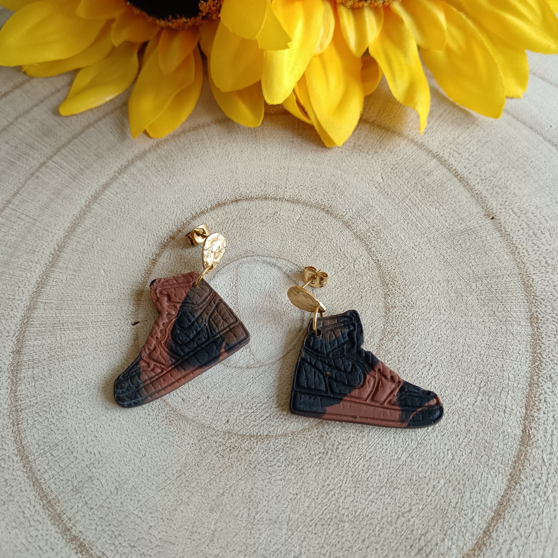 These Leopard Print Hi-Top Trainer Earrings are handcrafted from polymer clay and styled like mini retro sneakers, complete with a bold leopard pattern that’s equal parts sporty and fierce 💥🖤🧡