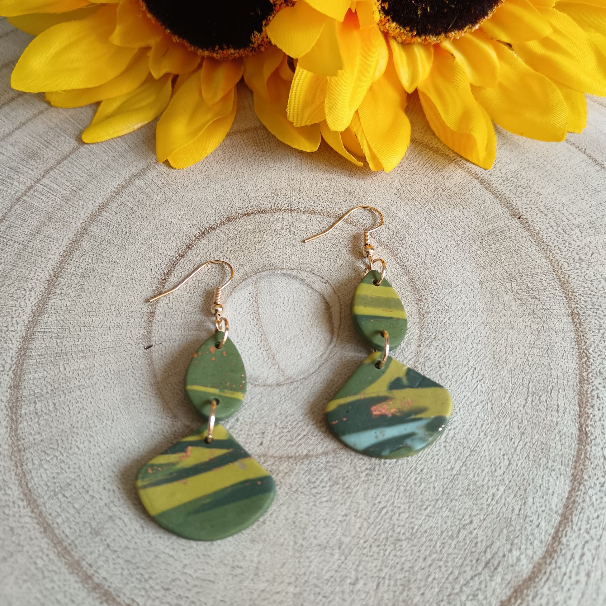 These hand-crafted beauties are made from polymer clay and feature a chic khaki ombre that fades like a perfect sunset, with just a whisper of rose gold for that subtle pop of glam. 🌅✨