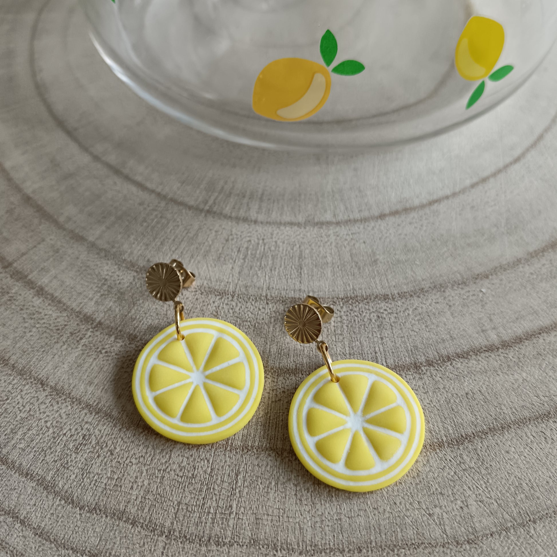 Handcrafted from polymer clay and designed to look just like tiny, zesty lemon slices — cheerful, bold, and full of sunny personality.