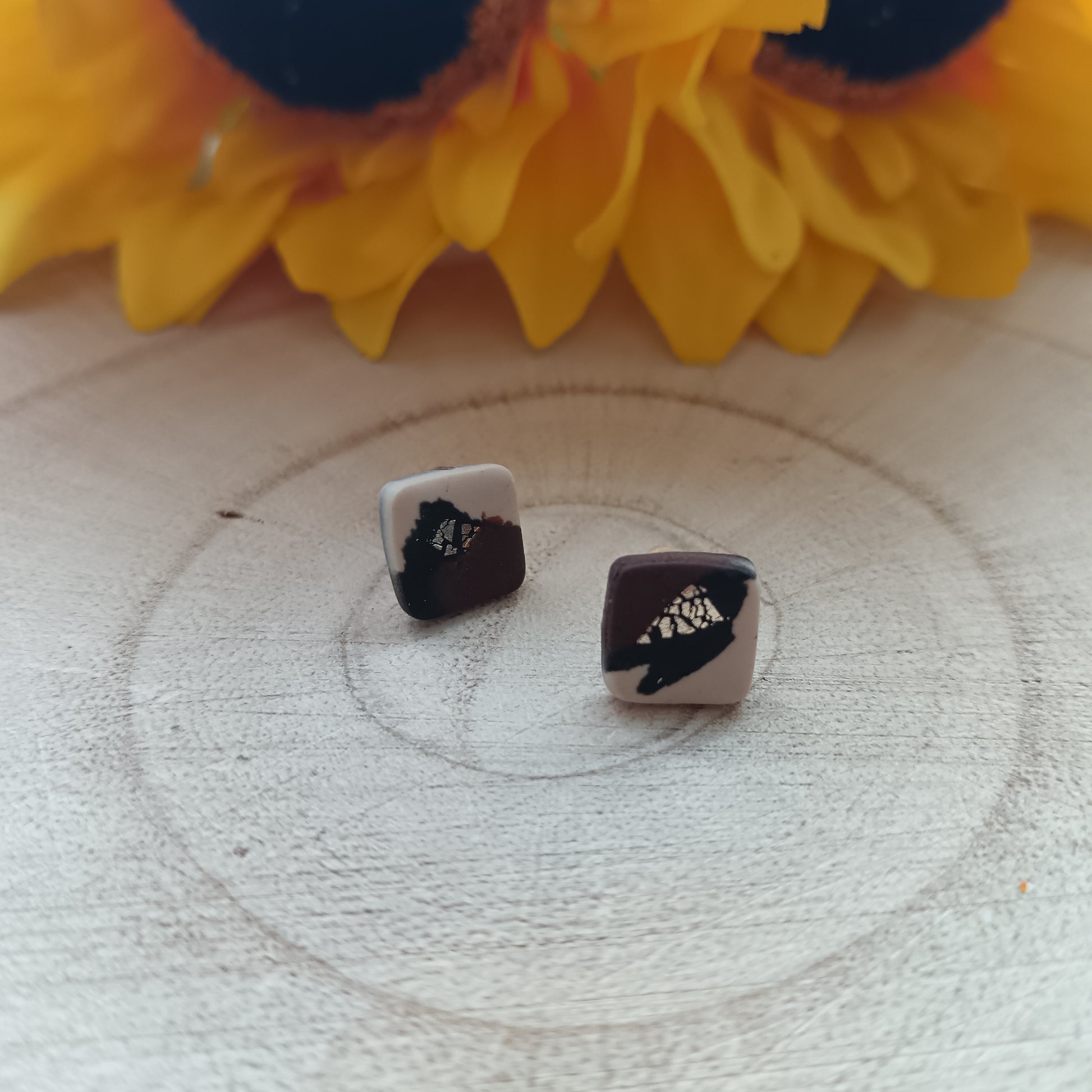 Each pair is carefully made with individual pieces of clay in rich neutral tones, giving them a natural, textural feel and one-of-a-kind personality. The soft square shape keeps things effortless and modern, with just the right touch of wild.