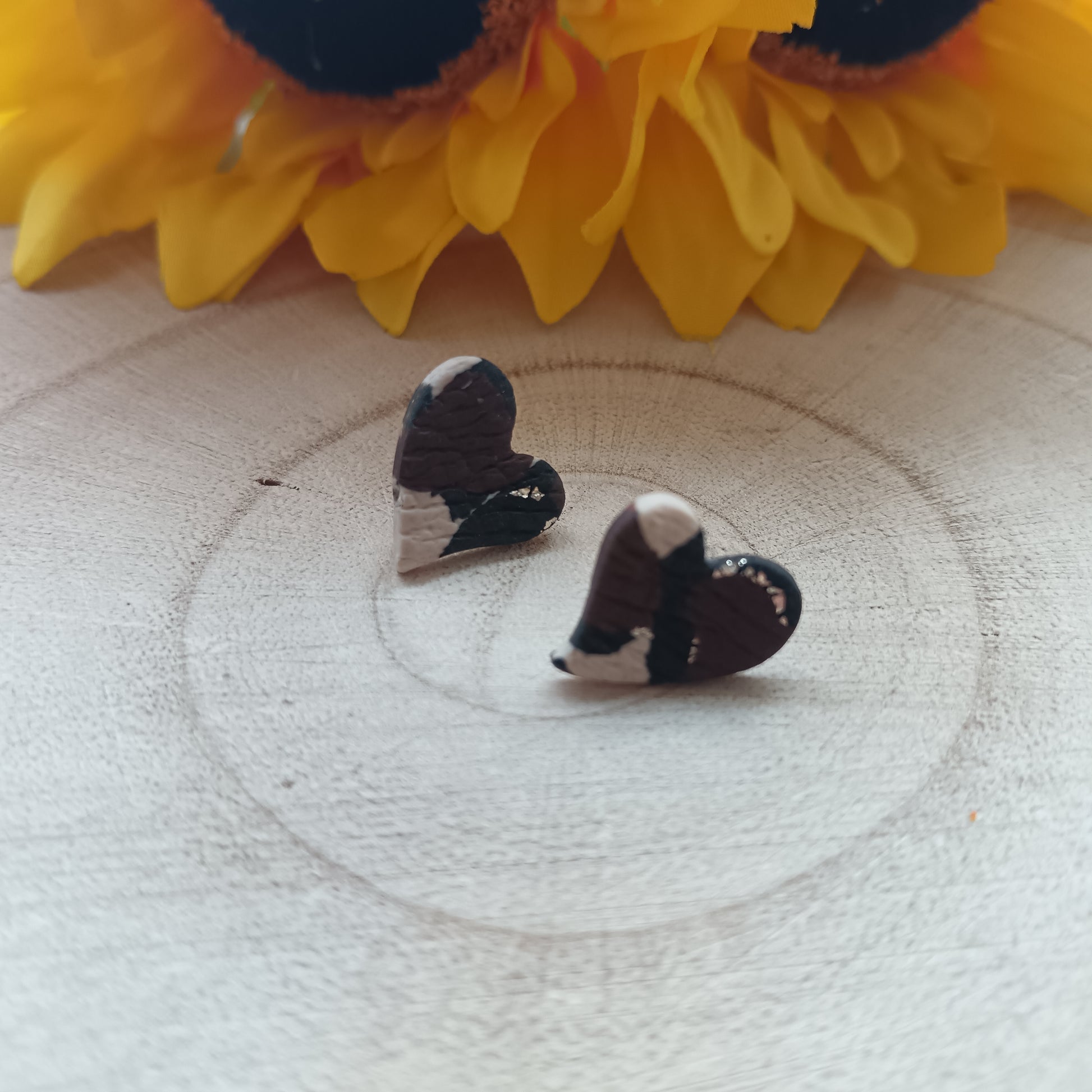 Each pair is carefully made with individual pieces of clay in rich neutral tones, giving them a natural, textural feel and one-of-a-kind personality. The soft heart shape keeps things effortless and modern, with just the right touch of wild.