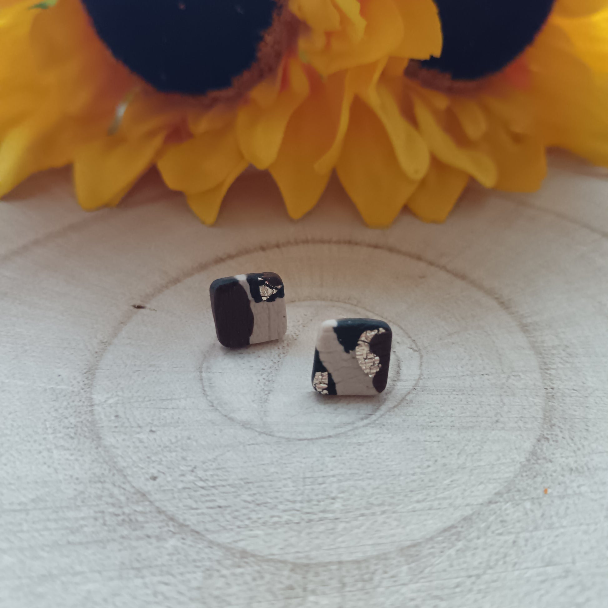 Each pair is carefully made with individual pieces of clay in rich neutral tones, giving them a natural, textural feel and one-of-a-kind personality. The soft square shape keeps things effortless and modern, with just the right touch of wild.