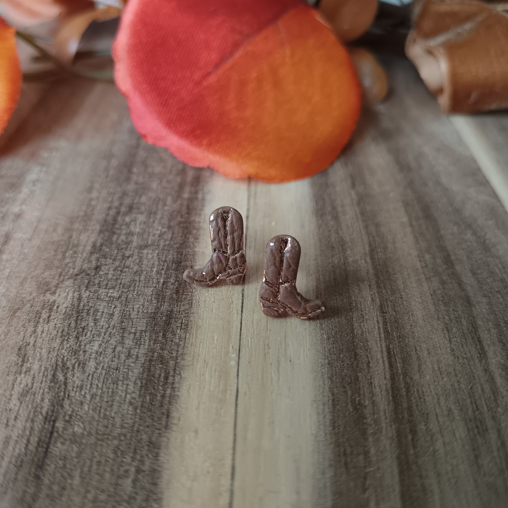 Micro Cowgirl Caramel Brown Boots Stud Earrings