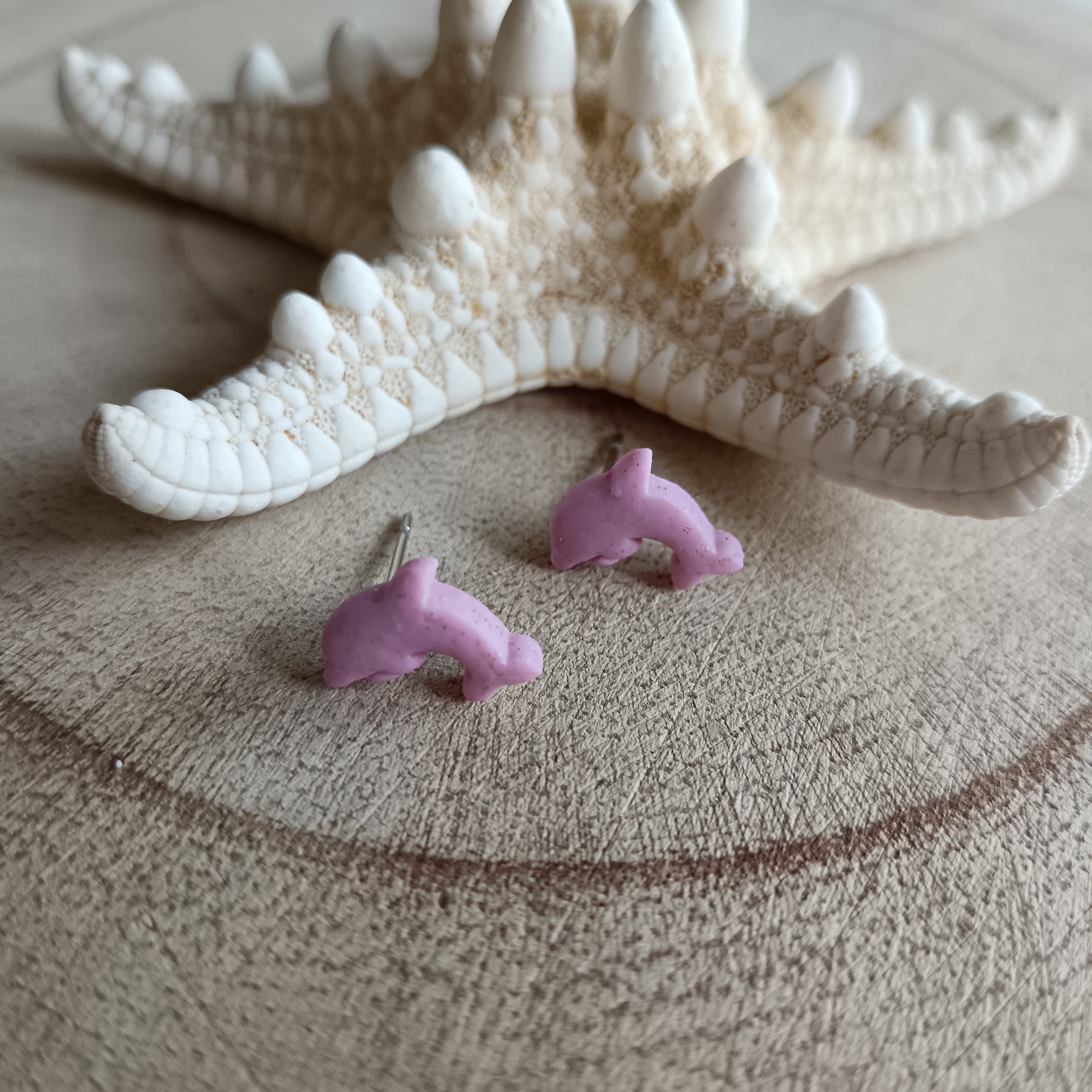 Handcrafted from lightweight polymer clay, each mini dolphin is sculpted in a soft baby pink shade and brushed with a touch of iridescent mica powder for a delicate shimmer.