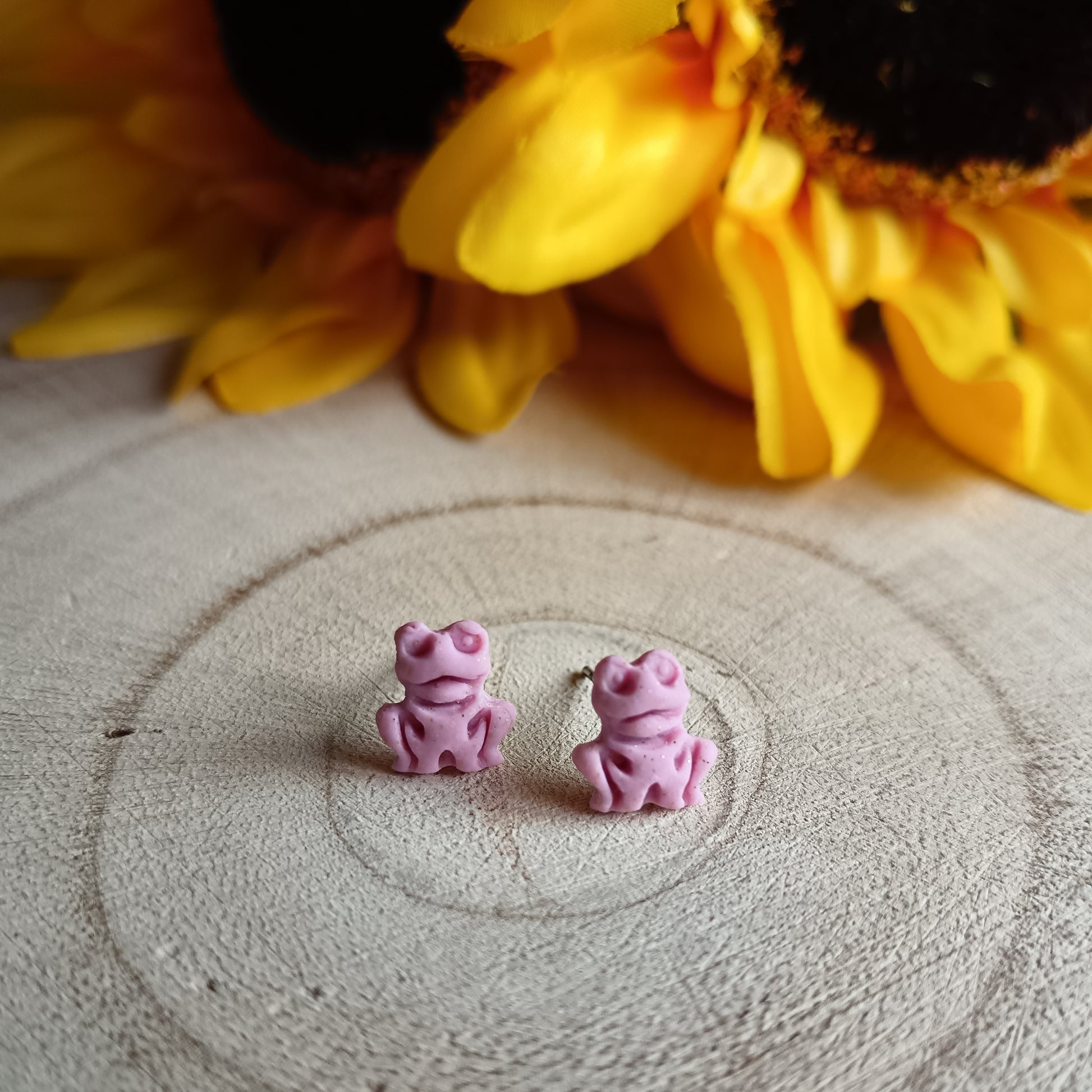 Micro Frog Baby Pink Shimmer Stud Earrings