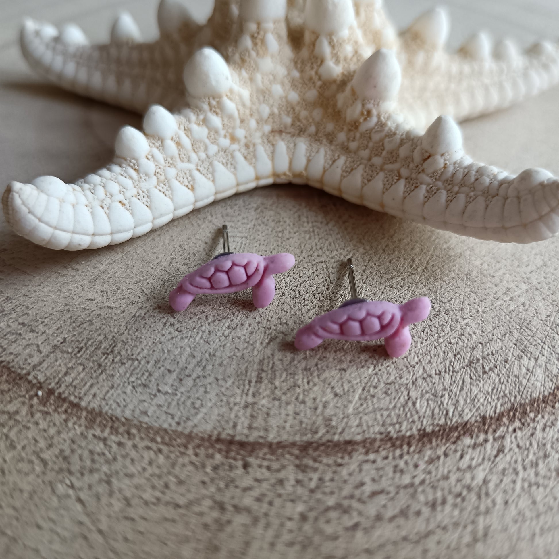 Each adorable turtle is handcrafted from polymer clay in a delicate baby pink shade, finished with a light dusting of mica powder for that subtle, shimmery glow.