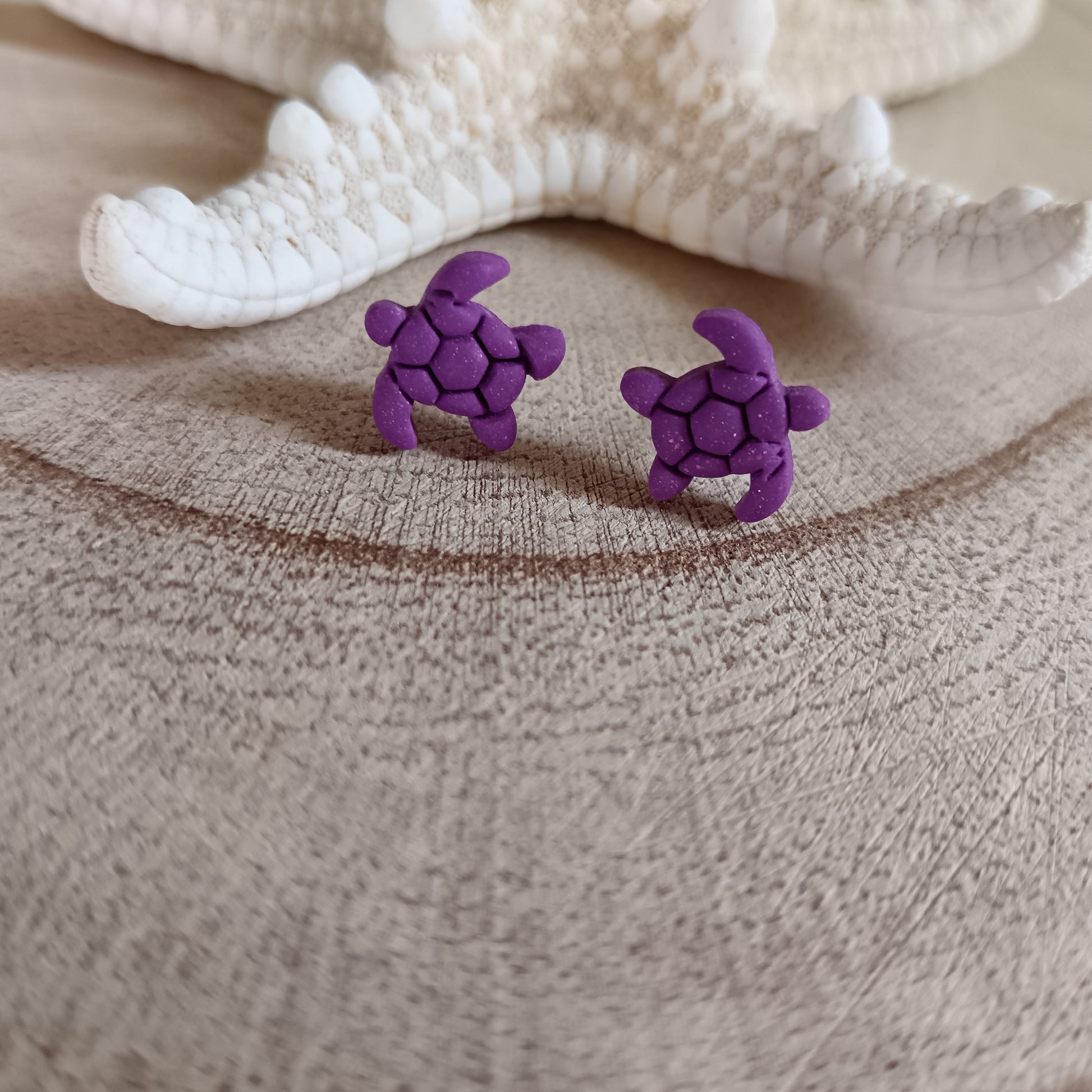 Handcrafted from polymer clay in a rich purple shade, each mini turtle is finished with a delicate dusting of mica powder for that perfect shimmer.