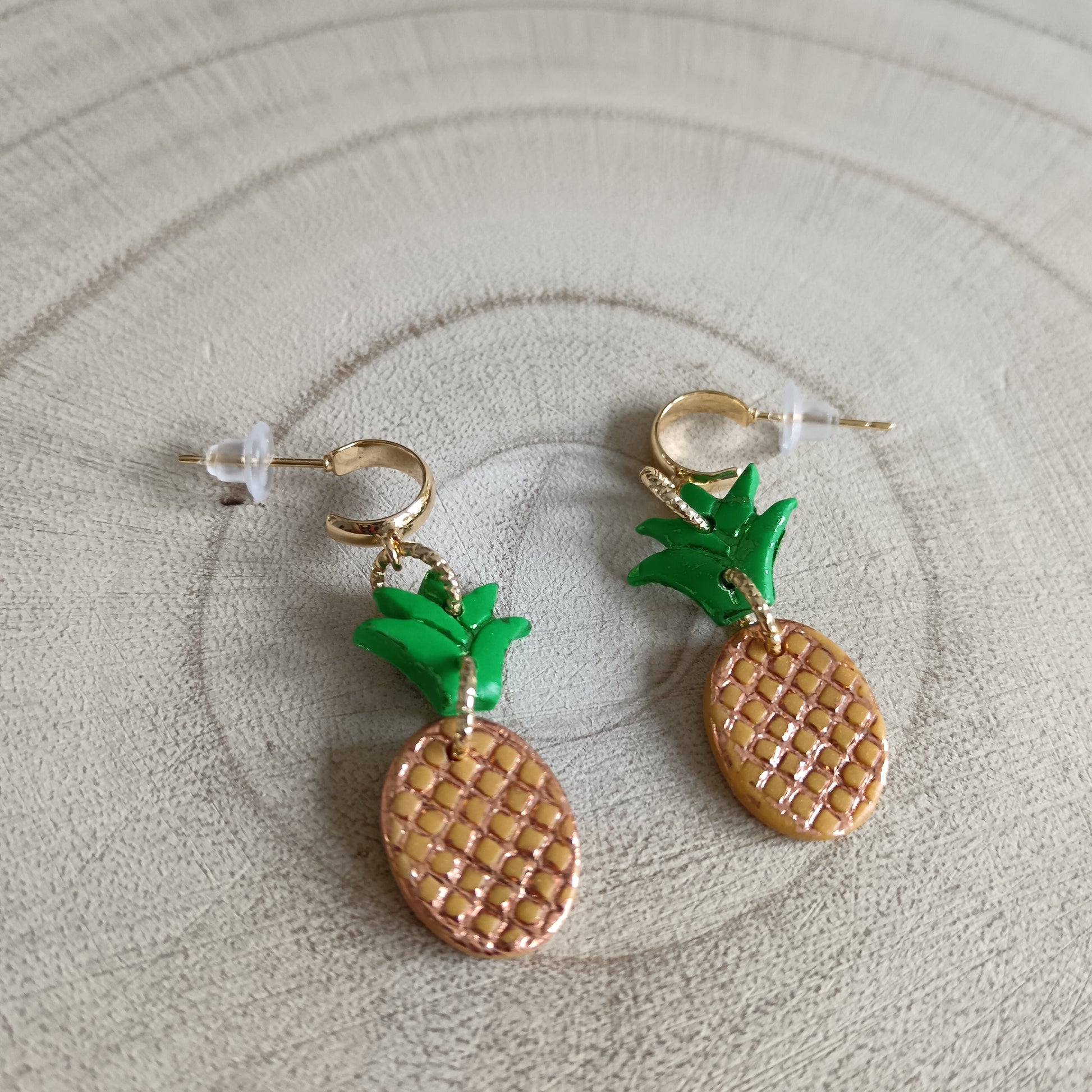 🍍 Pineapple Dangle Earrings – Two-Piece Polymer Clay Design