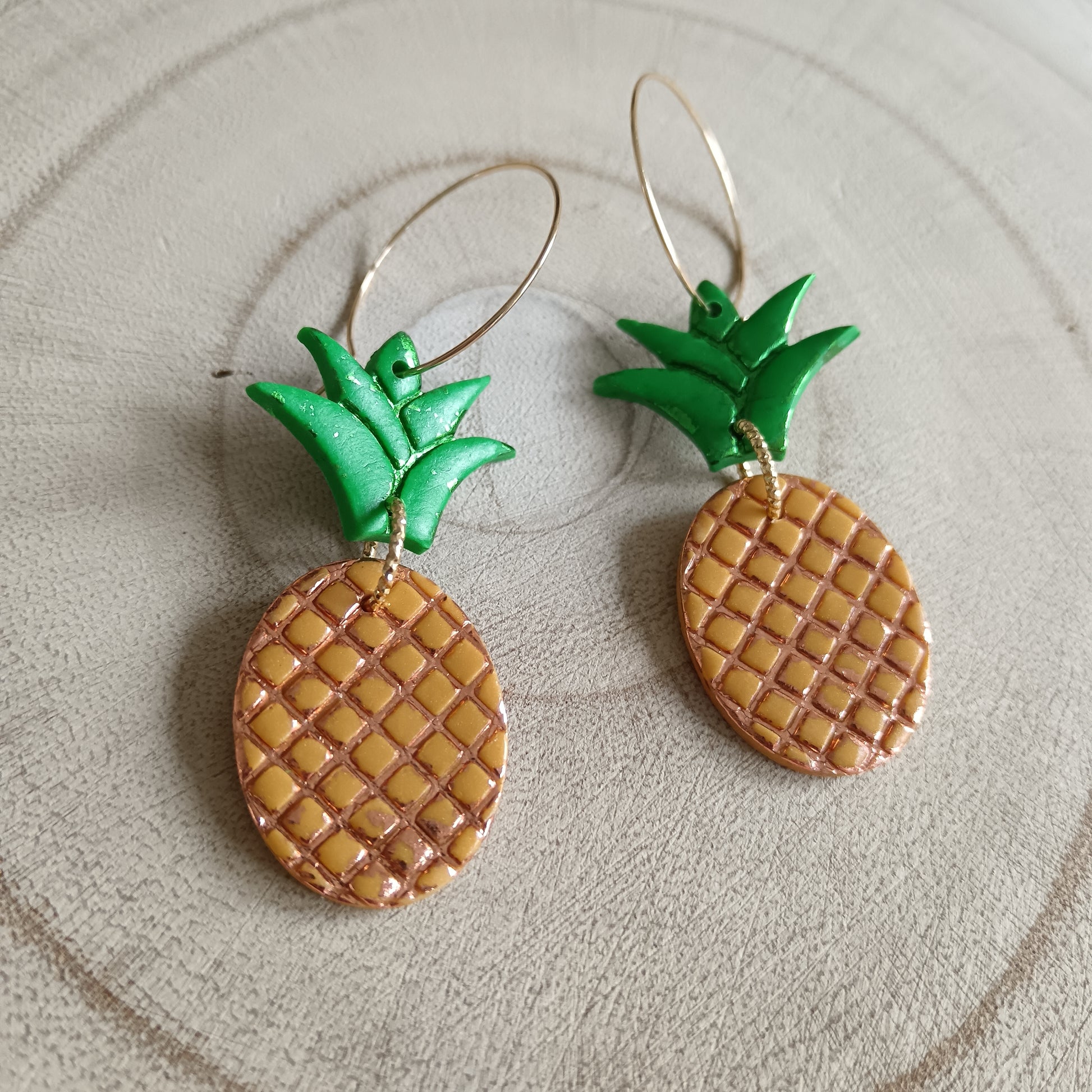 🍍 Pineapple Dangle Earrings – Two-Piece Polymer Clay Design