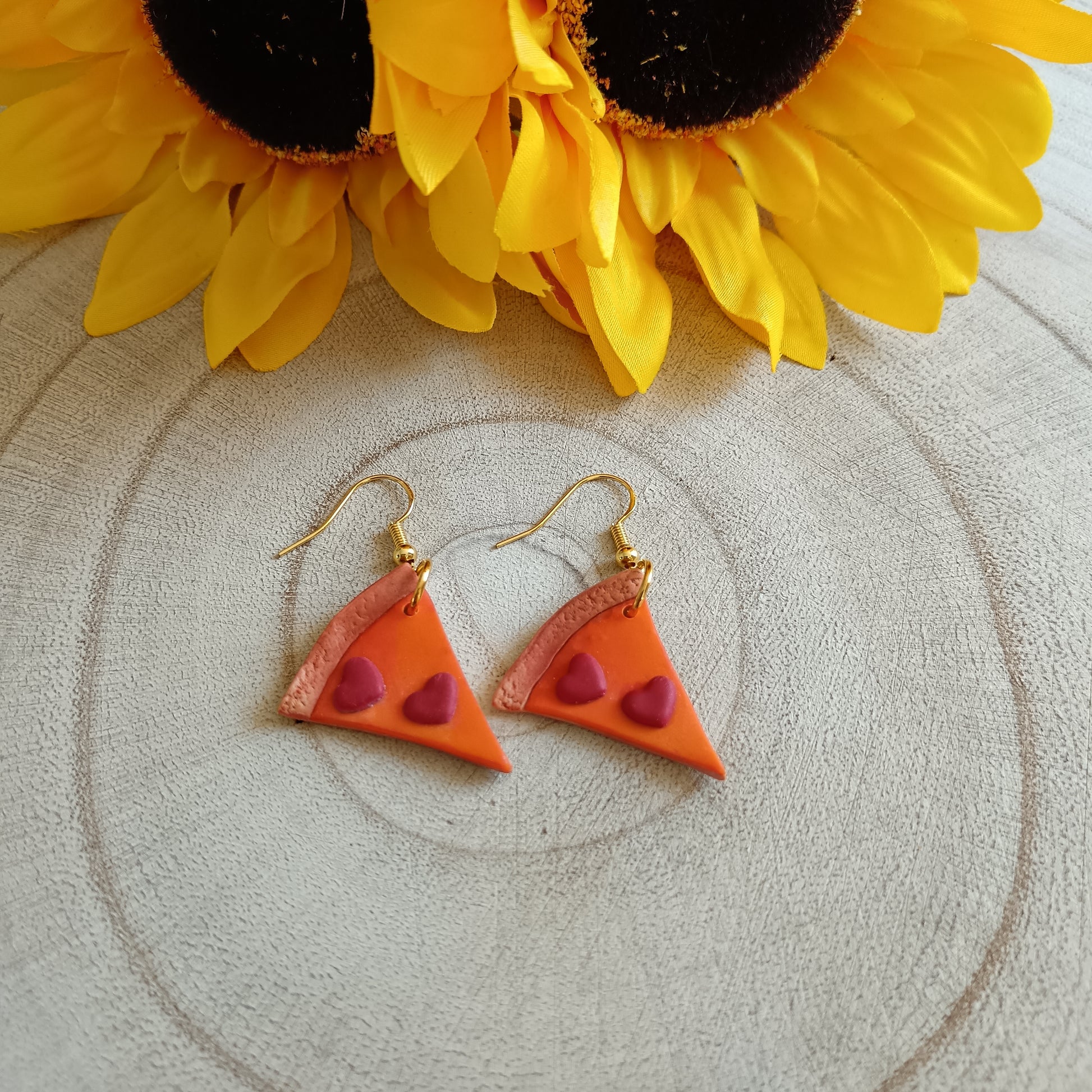 Show off your love for the ultimate comfort food with these adorable polymer clay pizza slice earrings!