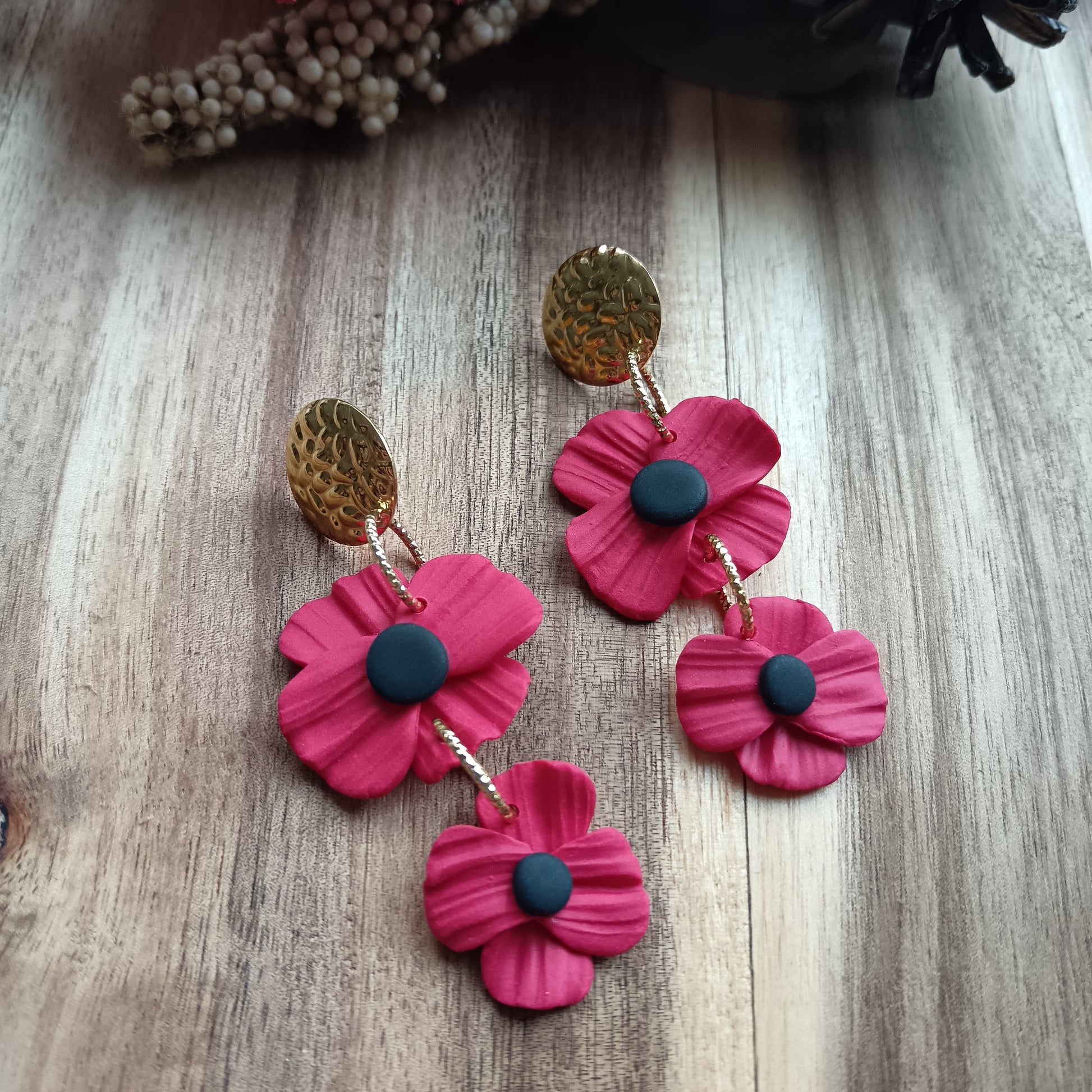 🌺✨ Handcrafted Poppy Dangle Stud Earrings