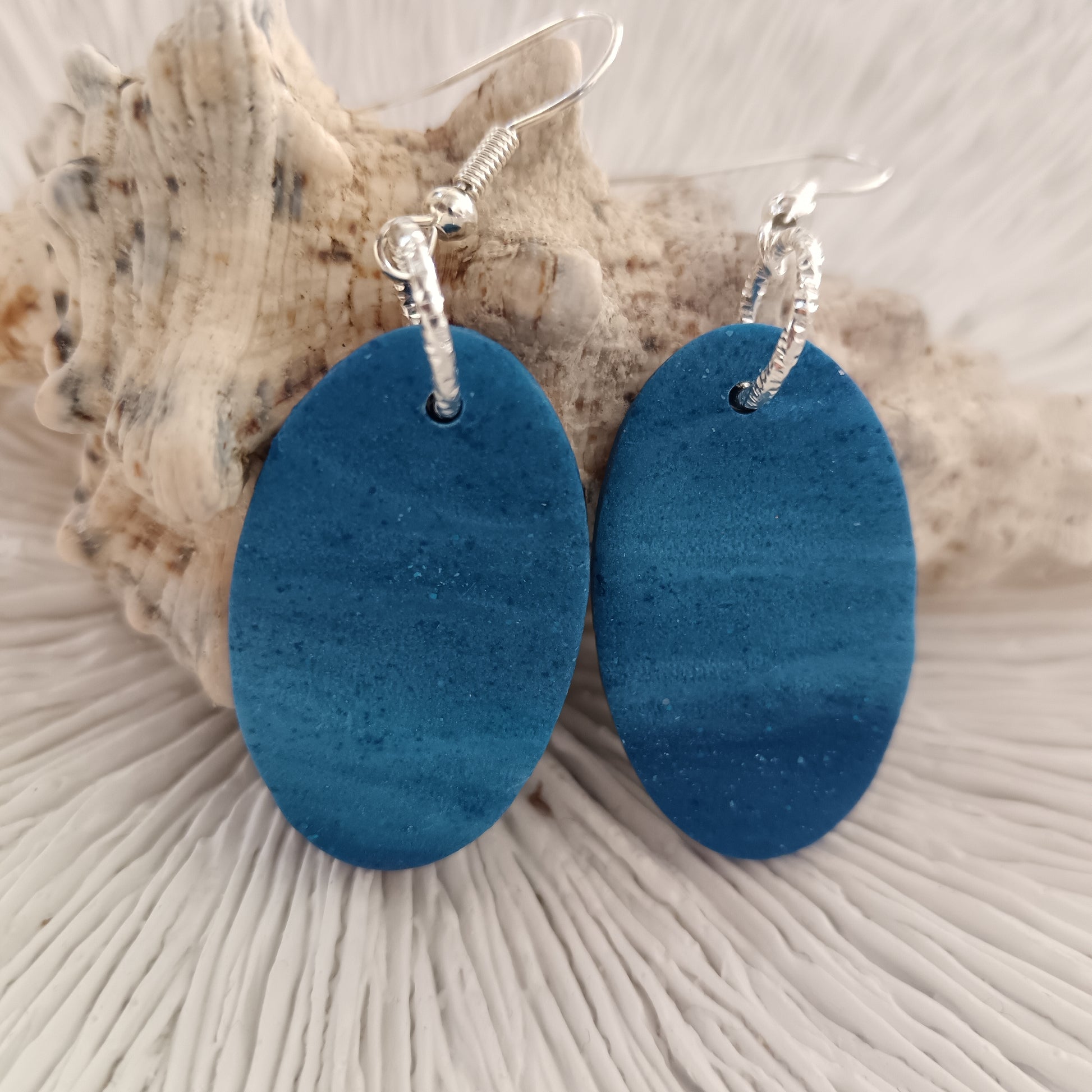 These Sea-Inspired Wave Texture Earrings are handcrafted from polymer clay in layered shades of blue, designed to echo the shifting tones of the sea.