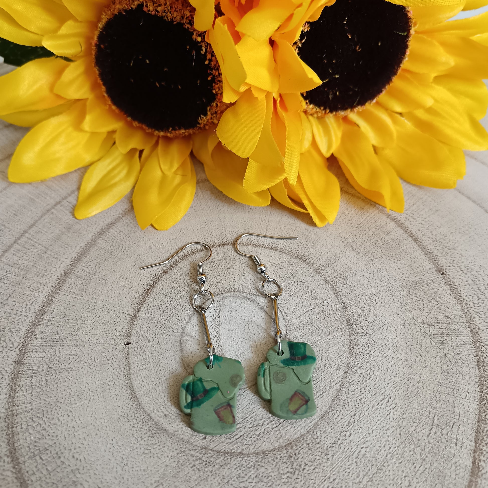 These handcrafted St. Patrick’s Day Beer Glass Earrings are made from lightweight polymer clay and printed with a cheeky little print—because your ears deserve to party too! 🎉🍀