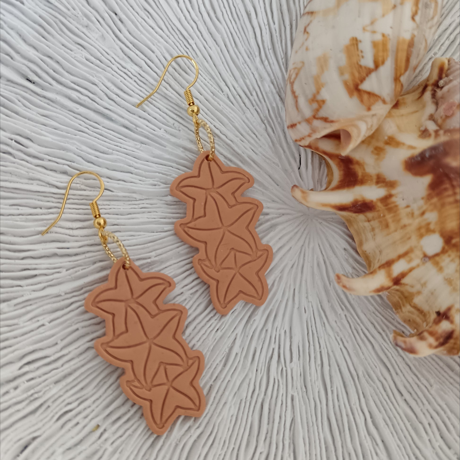 Triple Stacked Starfish Peach Orange Hook Earrings